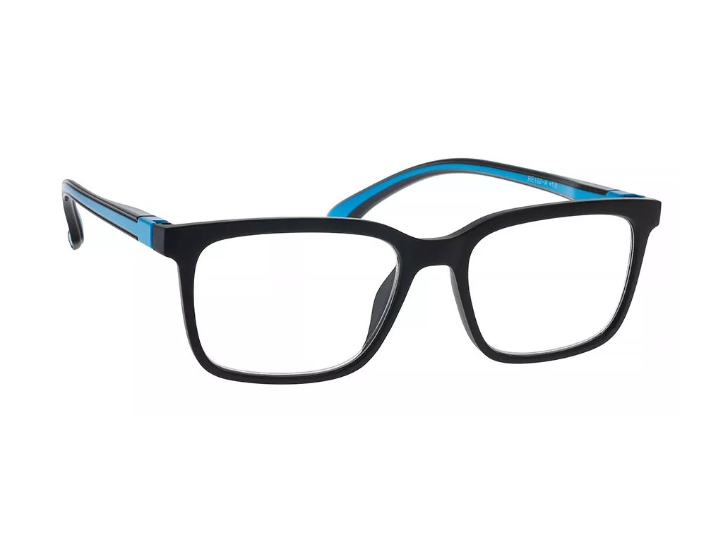 RE102-A jsou pánské brýle s modrými akcenty na stranicích. Tato barevná kombinace se stala hitem mezi muži, kteří si cení originality a elegance. Obdélníkový tvar obroučky je univerzální a elegantní, takže se hodí pro jakýkoli tvar obličeje. Systém FLEX zabraňuje deformaci stranic a usnadňuje nasazení brýlí.